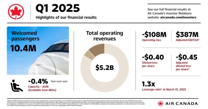 Air Canada reportó sus resultados financieros correspondientes al primer trimestre de 2025.