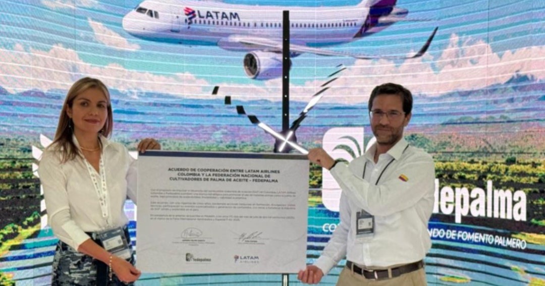 En el marco de la Feria Internacional Aeronáutica y Espacial F-Air 2025, que se desarrolló en Medellín, LATAM Airlines Colombia y la Federación Nacional de Cultivadores de Palma de Aceite, Fedepalma, firmaron un acuerdo de cooperación para trabajar de manera conjunta en la promoción y desarrollo del combustible sostenible de aviación (SAF), producido a partir de materias primas como la palma de aceite colombiana. El convenio tendrá una vigencia de cinco años, las organizaciones se comprometieron a generar iniciativas conjuntas que visibilicen el potencial para producir SAF con criterios de sostenibilidad. “La transición energética de la aviación no puede hacerse sola. Requiere alianzas estratégicas, visión compartida y trabajo conjunto entre sectores. Esta alianza con Fedepalma reafirma nuestro compromiso con el desarrollo de una industria SAF en Colombia, basada en ciencia, sostenibilidad y confianza”, dijo María Lara, Gerente de Asuntos Corporativos de LATAM Airlines Colombia.